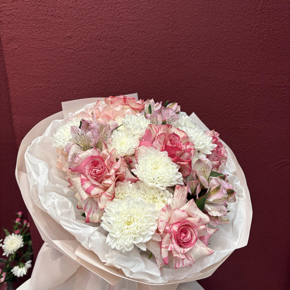 Альстромерия - 3 шт. Гортензия - 1 шт. Хризантема кустовая - 3 шт. Роза - 5 шт.