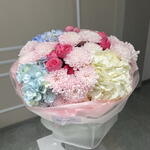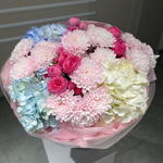 Гортензия - 3 шт. Роза кустовая - 3 шт. Хризантема кустовая - 4 шт.