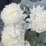 Эвкалипт - 5 шт. Стифа - 3 шт. хризантема бигуди белая - 5 шт.