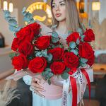 Роза красная - 21 шт. Эвкалипт - 1 шт.