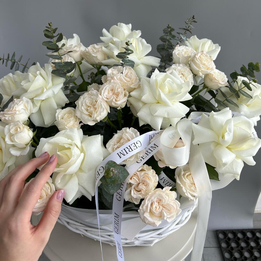 Эвкалипт - 3 шт. Кустовая роза - 5 шт. Французская роза - 11 шт.