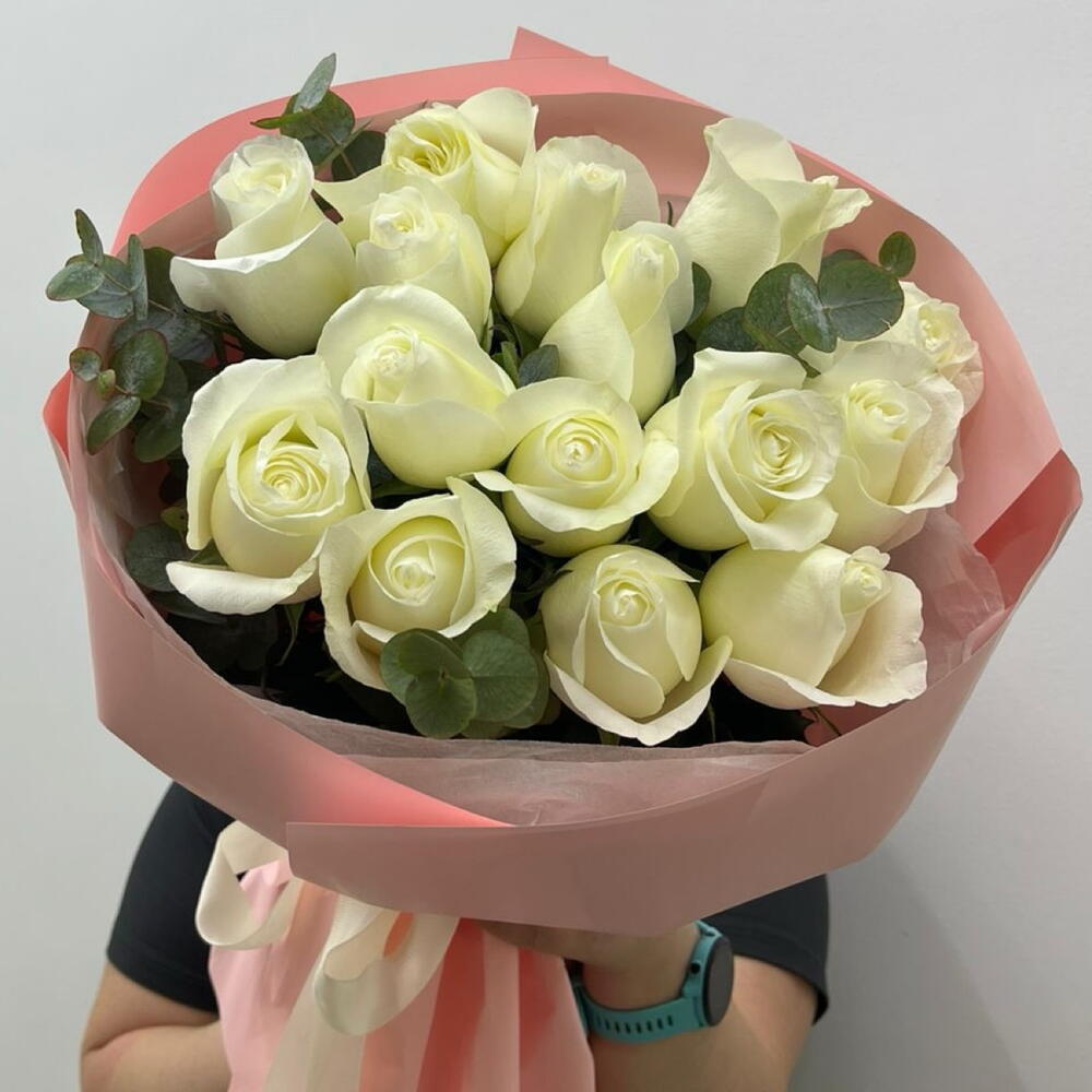 Голландская роза - 15 шт. Эвкалипт Цинерея - 3 шт.