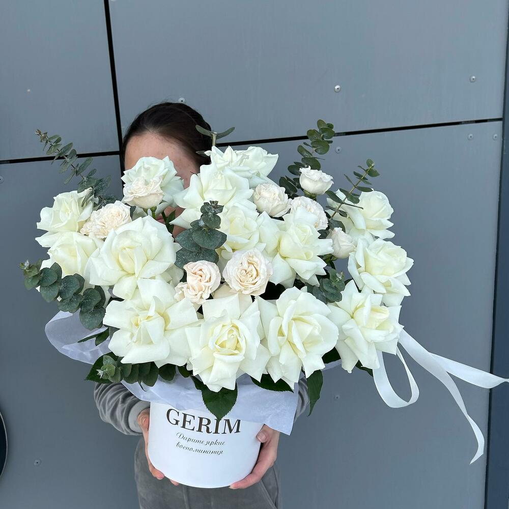 Эвкалипт - 2 шт. Кустовая роза - 4 шт. Французская роза - 13 шт.