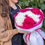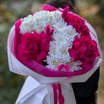 Гортензия - 1 шт. Хризантема кустовая - 2 шт. Роза - 3 шт. Лагурус - 6 шт.