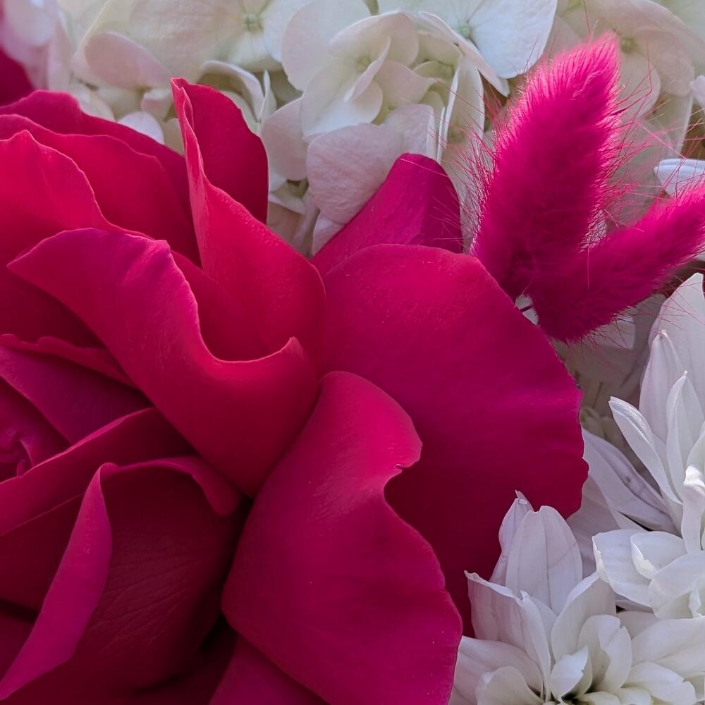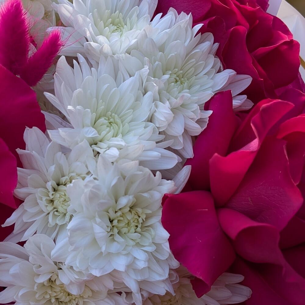 Гортензия - 1 шт. Хризантема кустовая - 2 шт. Роза - 3 шт. Лагурус - 6 шт.