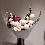 Хризантема кустовая - 1 шт. Хризантема одноголовая - 3 шт. Пионовидная кустовая роза - 2 шт. Эвкалипт Микс - 1 шт. эустома белая - 2 шт.
