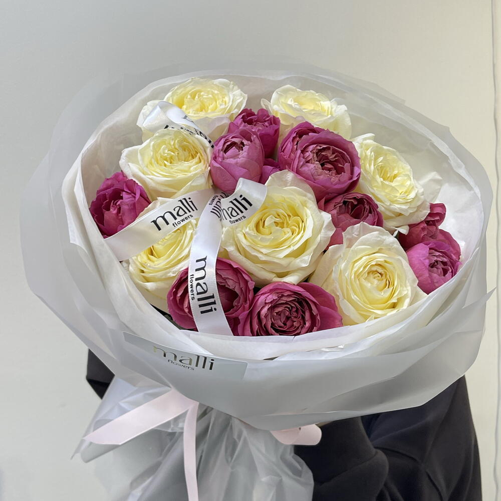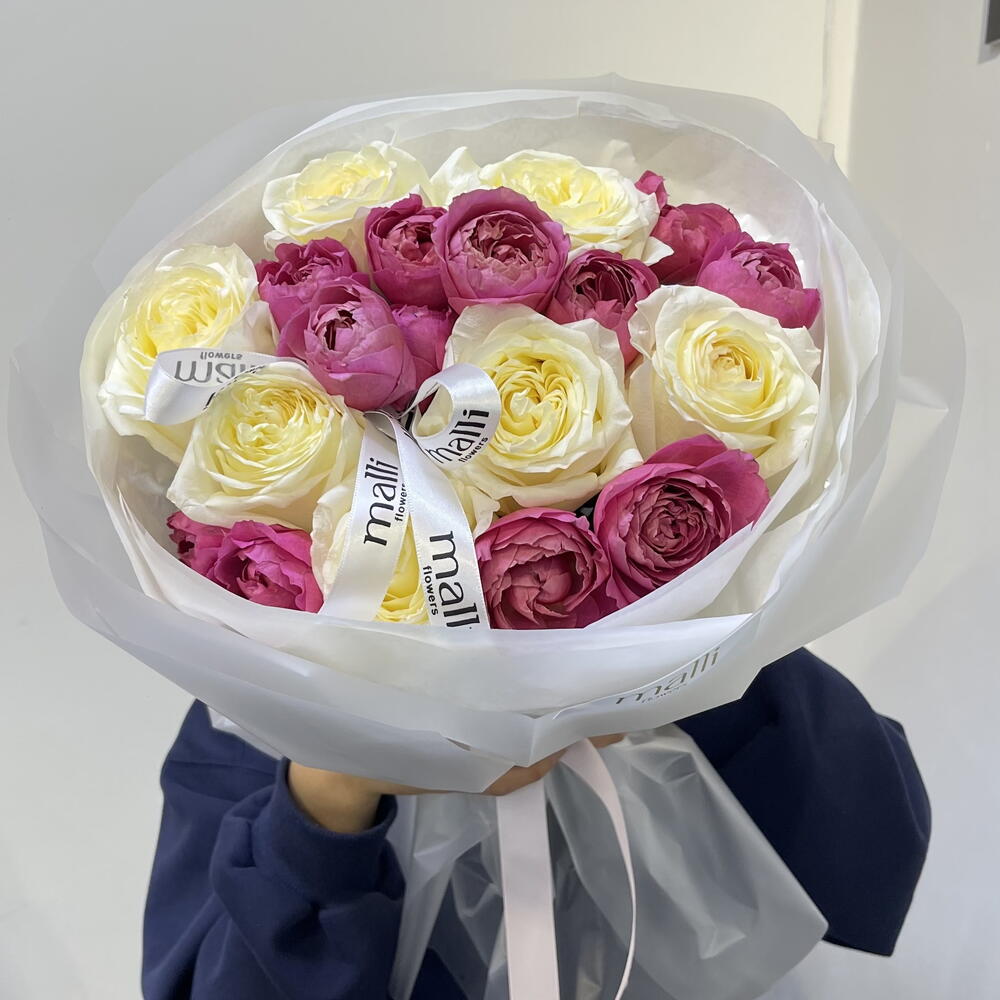 пионовидные розы - 7 шт. кустовые пионовидные розы - 5 шт.