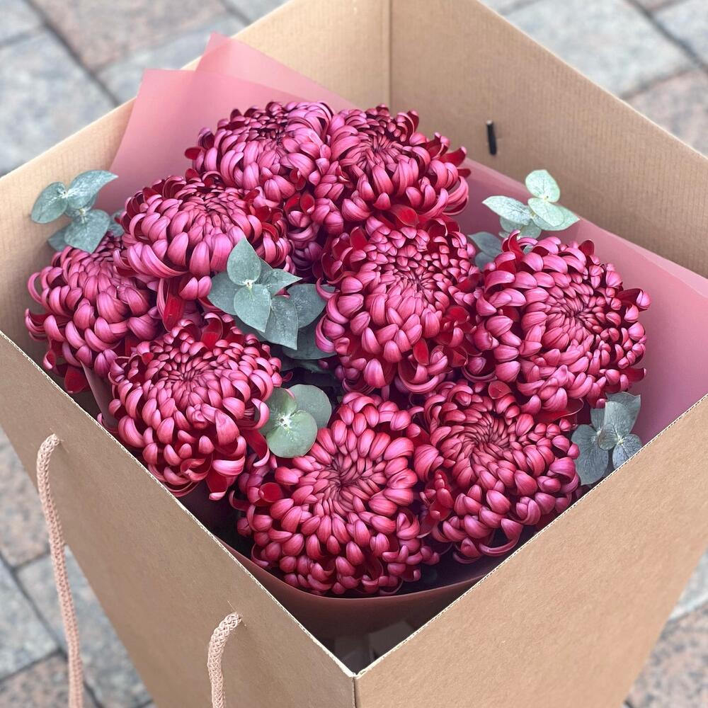 Эвкалипт - 1 шт. хризантема бигуди - 9 шт.