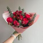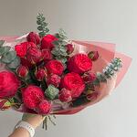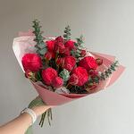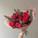 Эвкалипт - 1 шт. Пионовидная роза red piano - 7 шт.