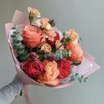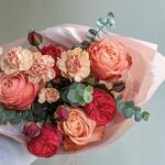 Эвкалипт - 1 шт. Диантус кустовой - 3 шт. Роза red piano - 3 шт. Роза кахала - 3 шт.