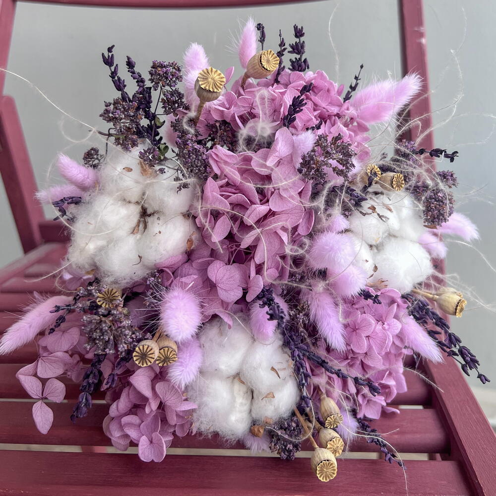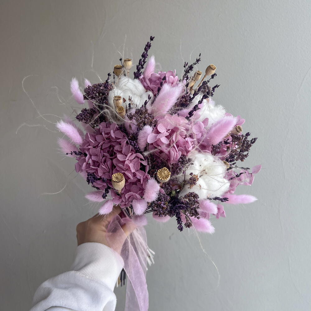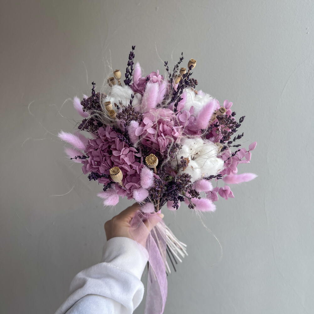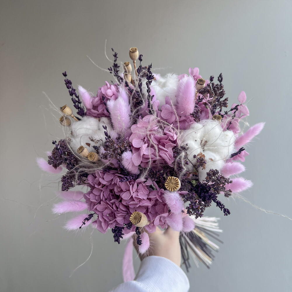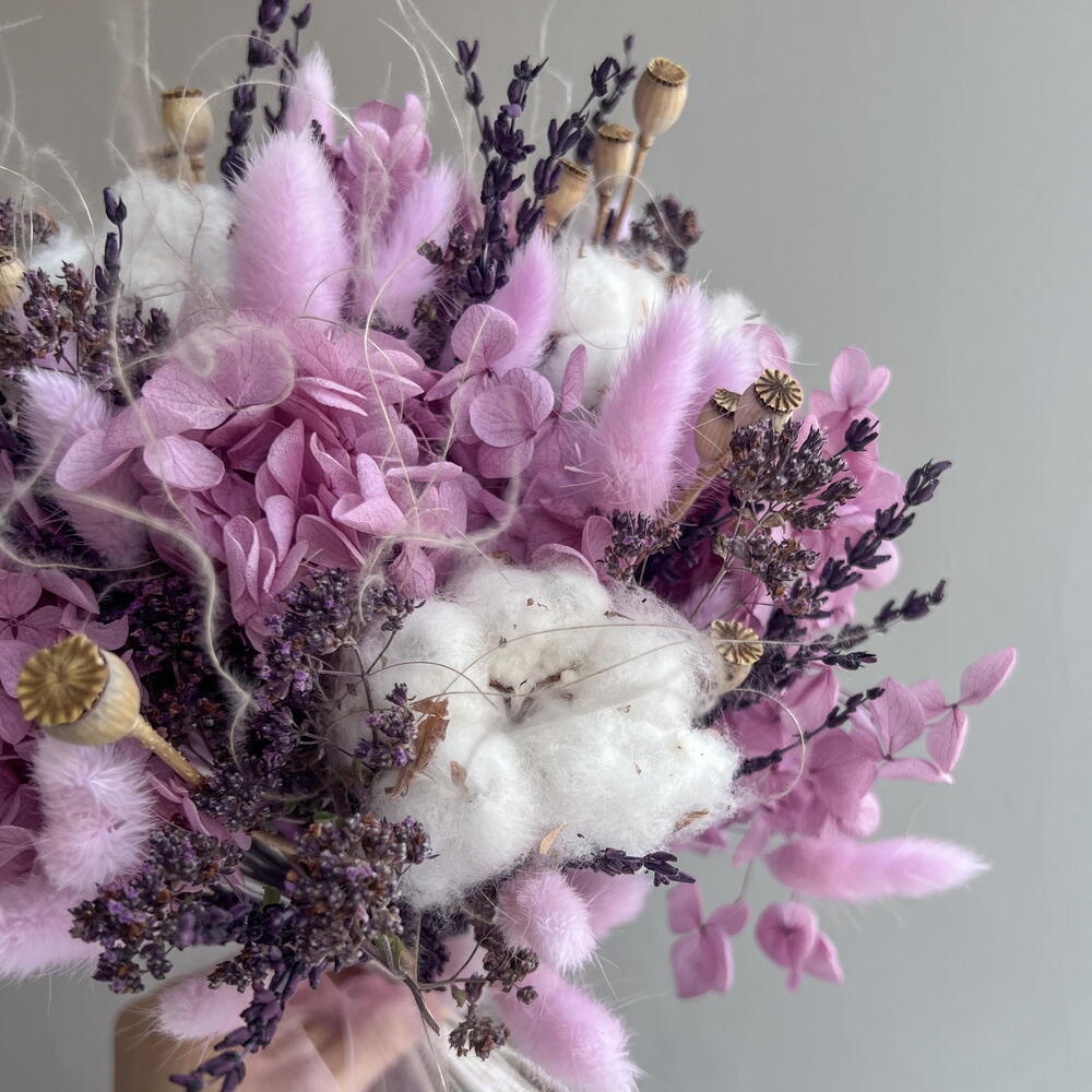 Гортензия - 4 шт. Лаванда - 50 шт. Хлопок - 3 шт. Ковыль - 4 шт. Лагурус - 40 шт. Душица - 5 шт. минимак - 2 шт.