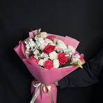 Альстромерия - 2 шт. Маттиола - 2 шт. Хризантема кустовая - 3 шт. Роза - 2 шт. Эустома - 2 шт. Диантус - 3 шт.