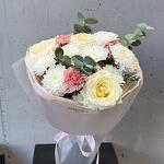 Хризантема кустовая - 2 шт. Эвкалипт - 2 шт. Гвоздика - 3 шт. Пионовидная роза - 3 шт.