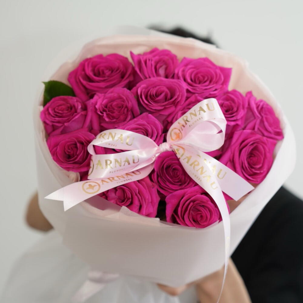 Пышный букет из малиновых роз с выразительным, насыщенным характером. Глубокий ягодный оттенок бутонов притягивает взгляд и символизирует страсть, уверенность и сильные чувства. Множество аккуратных роз собраны в плотную, округлую форму, создавая эффект роскоши и изобилия. Этот букет выглядит эффектно и статусно, идеально подходит для признаний, важных дат и моментов, когда хочется произвести яркое впечатление и сказать о чувствах без слов 🌹