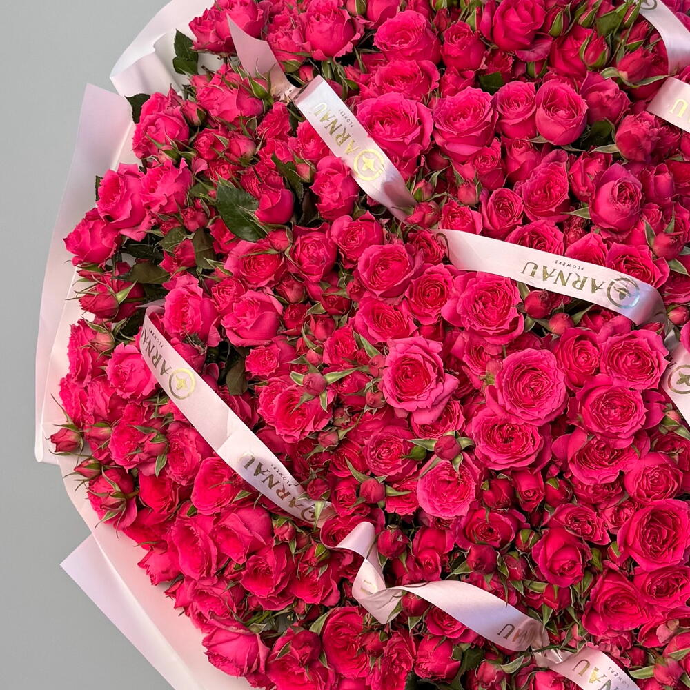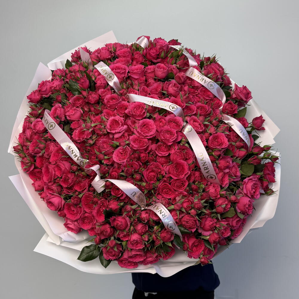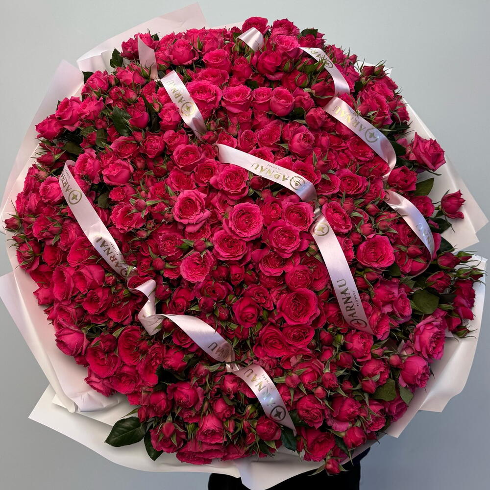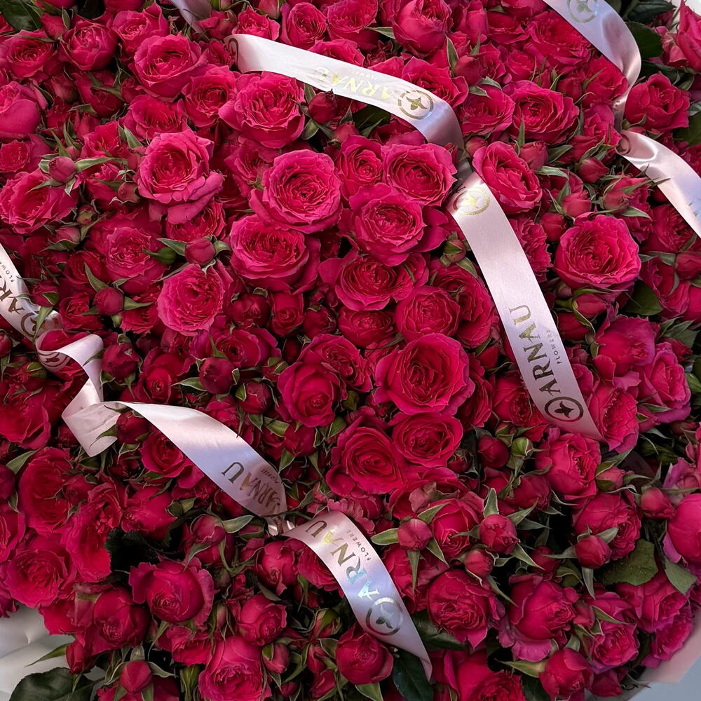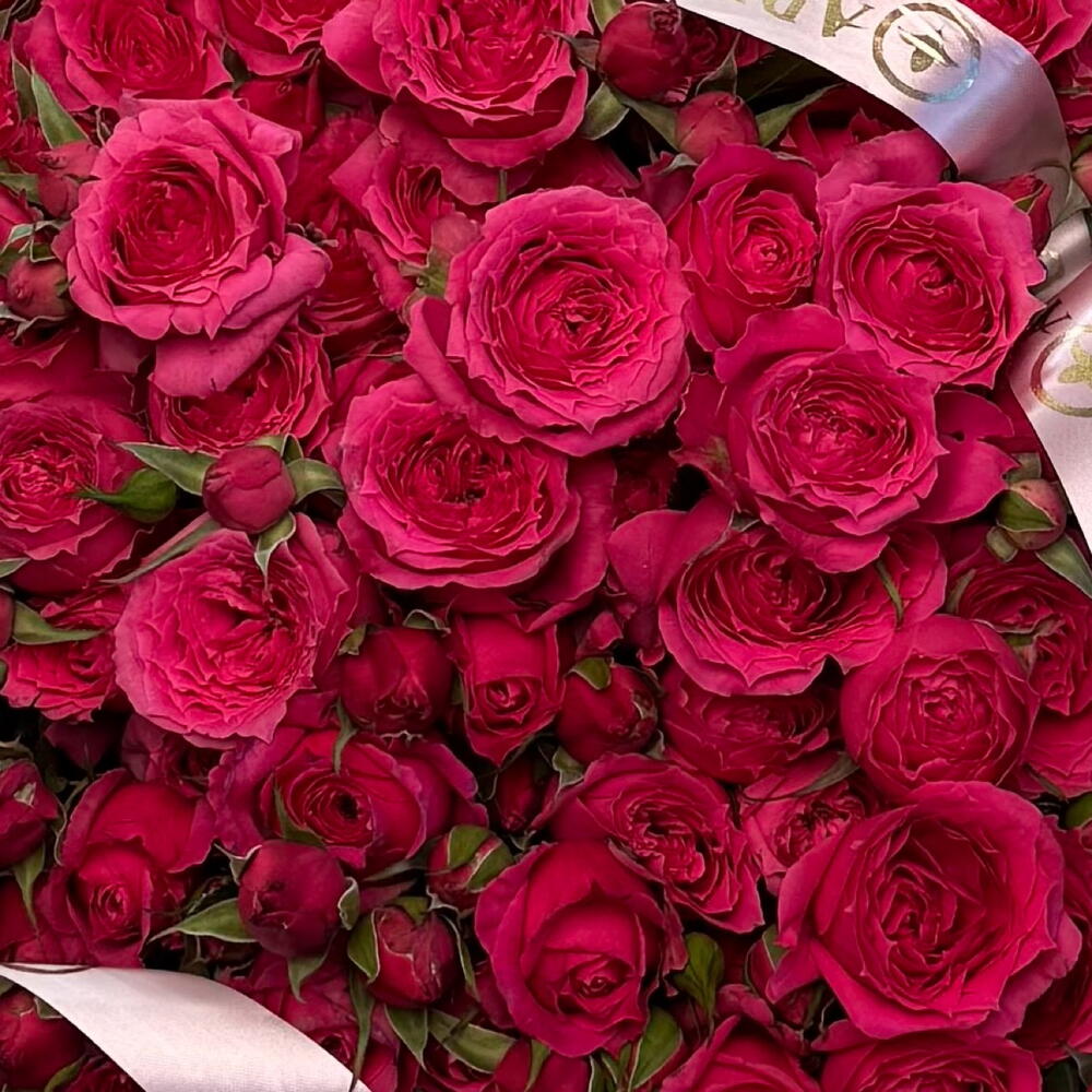 Моно-композиция из кустовых роз в насыщенном ягодном цвете. Идеально собранная форма, плотность и богатая текстура делают букет по-настоящему эффектным. Минималистичная упаковка подчёркивает глубину оттенка и статус композиции.