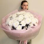 Этот изысканный букет из белоснежных хризантем — символ чистоты, искренности и тепла. Нежные пушистые лепестки создают ощущение легкости и свежести, а их элегантный вид делает композицию универсальным подарком для любого случая. Такой букет станет прекрасным знаком внимания, выражая самые добрые пожелания и светлые чувства.🤍