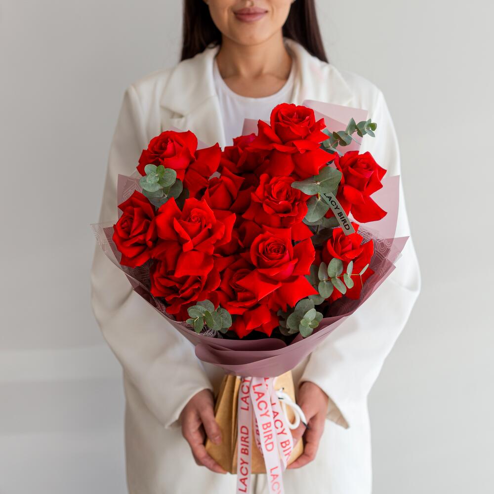 Букет Желанный от Lacy Bird – воплощение изысканности и чувственности. Глубокий алый оттенок роз сорта Нина в дуэте с утончённой зеленью эвкалипта создают гармонию, способную выразить самые сокровенные чувства. Идеально подходит: - Для любимого человека, чтобы признаться в чувствах или выразить восхищение. - Для близких, кому хочется подарить заботу и тепло. - Для значимых событий, где требуется элегантный акцент. Мы заботимся о каждой детали, поэтому все букеты уже включают: - Транспортировочный бокс для удобной доставки - Аквабокс, сохраняющий свежесть цветов - Бирочку с предсказанием для особого настроения - Подкормку, чтобы букет радовал как можно дольше - Открытку и конверт для ваших искренних слов. Желанный – больше, чем букет. Это знак внимания, который запомнится навсегда.