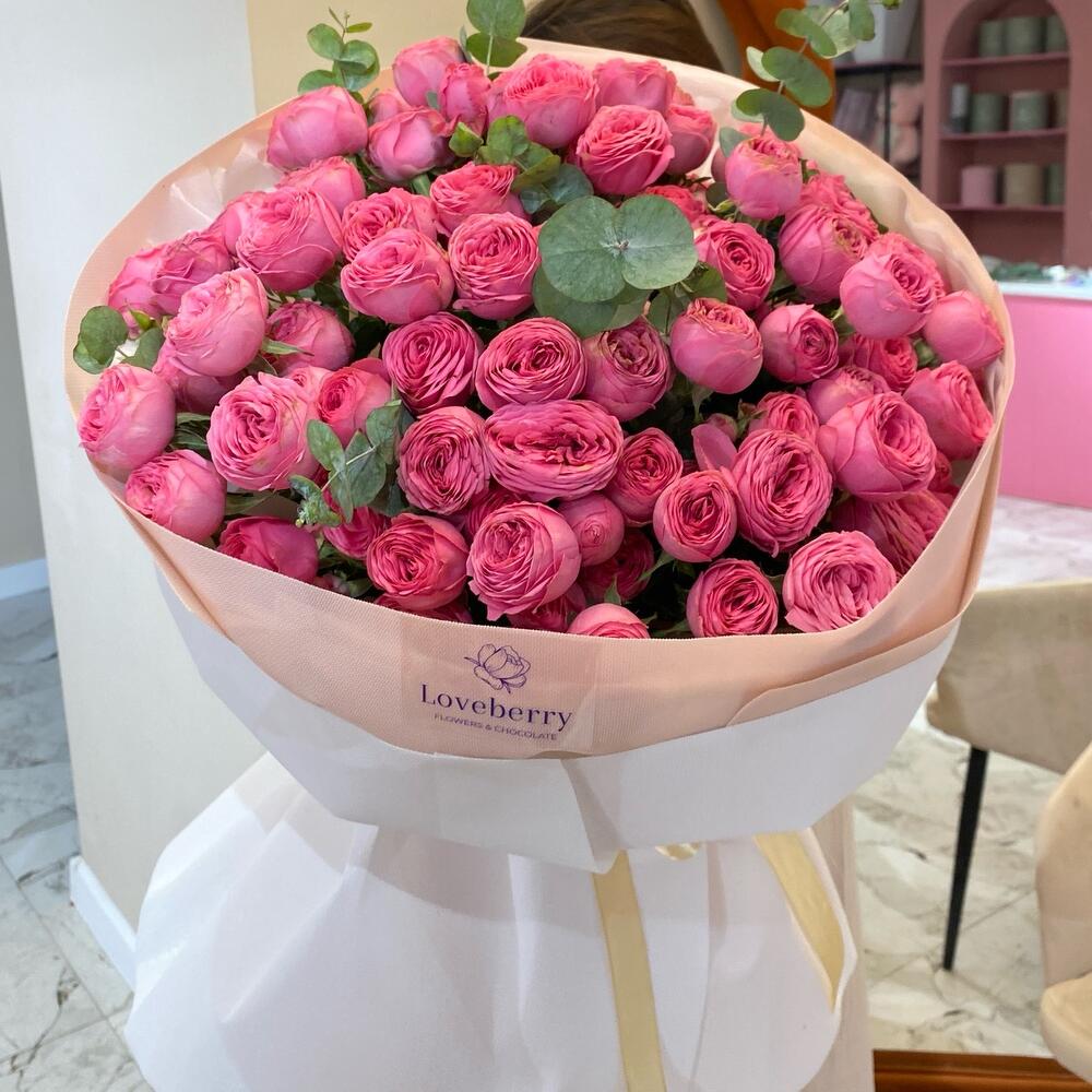 Букет из 15 веток спрей розы жизель и с эвкалиптом. Тренд этого сезона