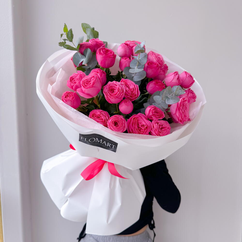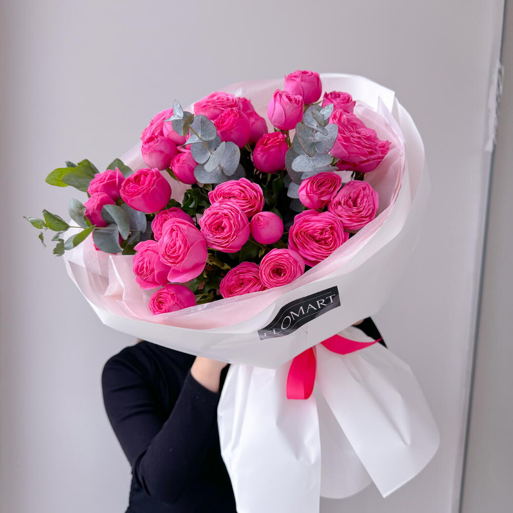Эвкалипт Цинерея - 1 шт. кустовые розы - 9 шт.