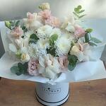 Хризантема кустовая - 1 шт. Эвкалипт - 3 шт. Роза - 5 шт. Эустома - 2 шт.