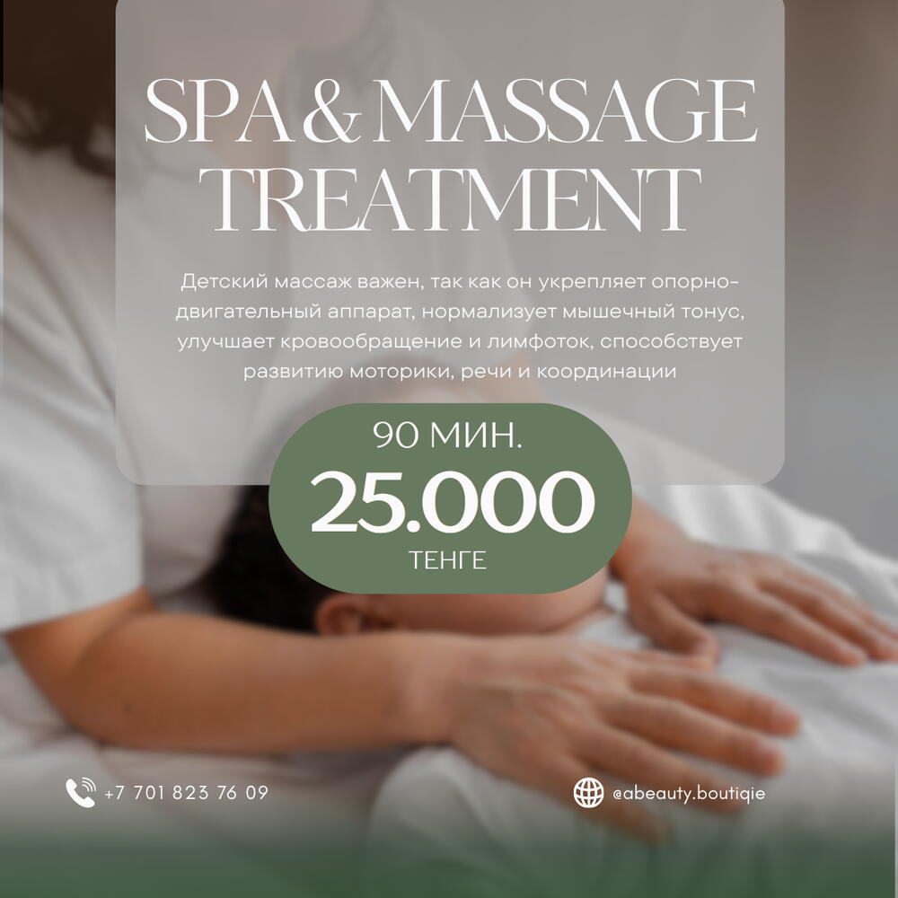 Детский массаж Super Chill Подарите вашему малышу гармонию, спокойствие и здоровое развитие с нашей уникальной процедурой Super Chill. Для кого: Подходит детям от первых месяцев жизни до подросткового возраста. Что даёт массаж: -снимает тревожность и гиперактивность, -улучшает сон и аппетит, -укрепляет иммунитет, -мягко расслабляет мышцы и суставы, -помогает гармоничному физическому и эмоциональному развитию. Super Chill — это не просто массаж, а ритуал заботы, где каждый прикосновение дарит малышу чувство безопасности и любви. Для родителей это спокойствие, что их ребёнок получает профессиональный и бережный уход. Что входит в часовой детский массаж: SPA-приветствие Расслабляющие техники Работа с ладонями и стопами Легкий массаж головы Растяжка и легкая гимнастика Завершающий ритуал с элементами ароматерапии или лёгкого дыхательного сопровождения (по согласованию с родителями)