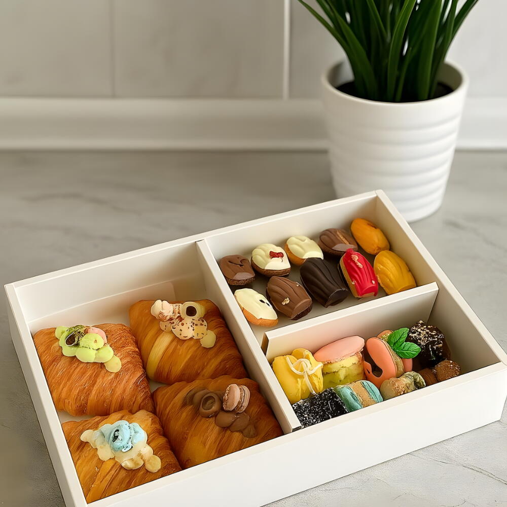 В набор входят: 🤤 Сертификат номиналом а 10000 в один из лучших спа салонов Алматы. 🥐 Круассаны — свежие, воздушные, с аппетитными кремовыми топпингами. 🍰 Мадлены — мягкие французские пирожные в различных вкусах и глазурях. 🌈 Макаронсы — нежные миндальные пирожные с насыщенными начинками, которые тают во рту. Каждый элемент подобран так, чтобы создать идеальную композицию из текстур, вкусов и ароматов. Набор подходит для подарка, корпоративных мероприятий, романтического ужина или утреннего кофе. Упаковка выполнена в минималистичном стиле — красиво, аккуратно и готово к вручению. Состав товара: Макаронсы - 8 шт Круассаны - 4 шт Мадлены - 10 шт Сертификат - 1 шт (номиналом 10000)