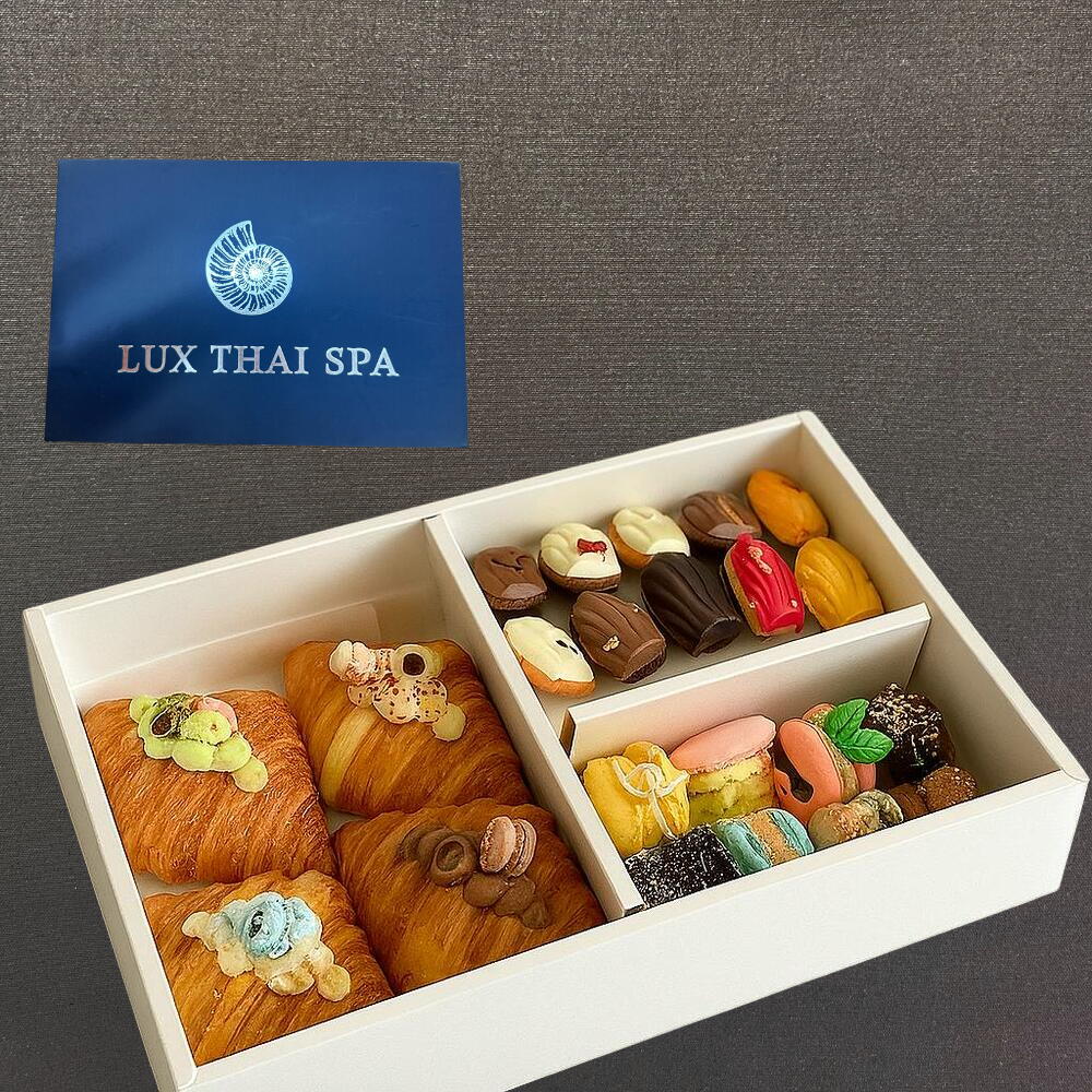 Макси бокс (Круассаны, мадлены, макаронсы) и сертификат в "LUX THAI SPA"