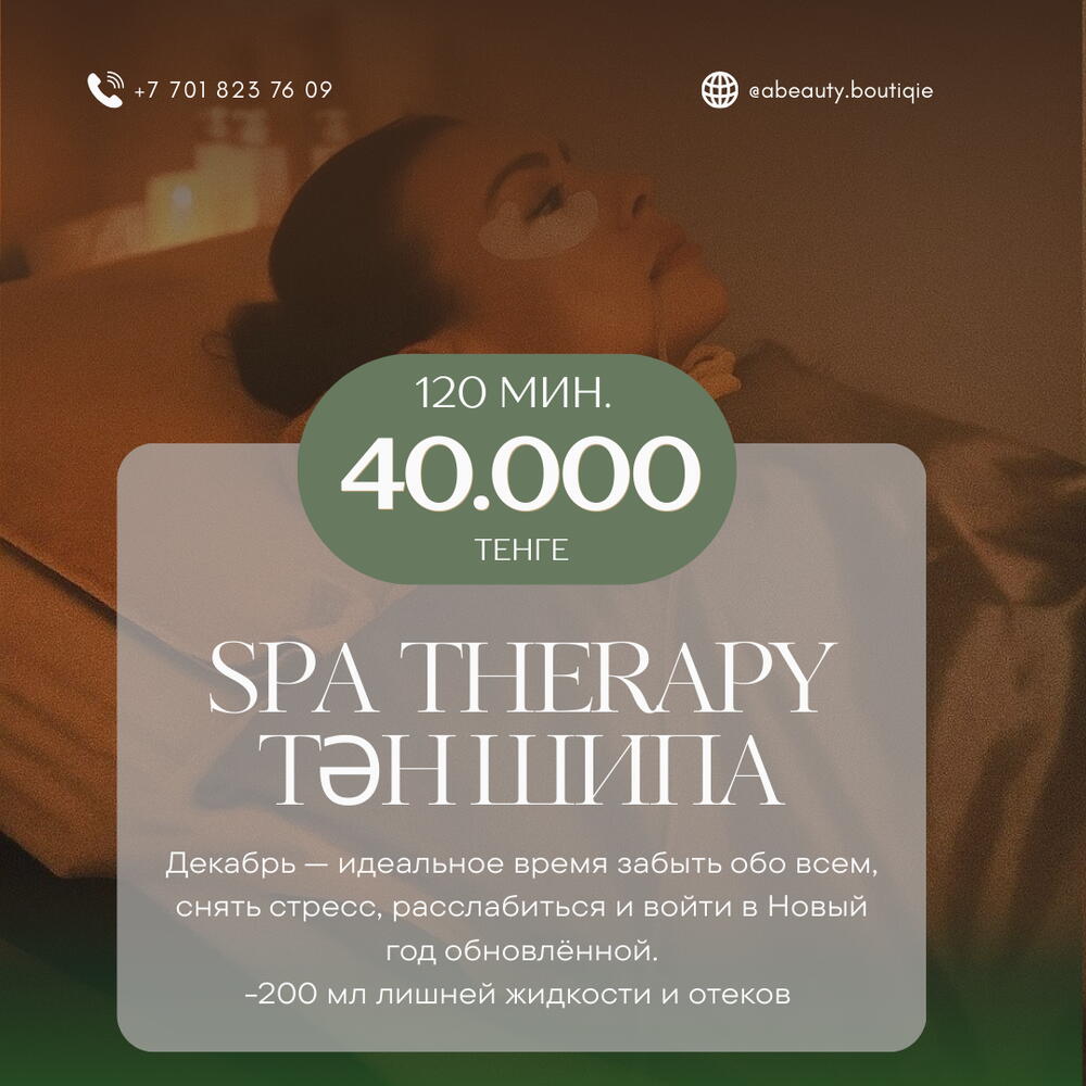 Откройте для себя силу казахской традиции с нашей спа-программой детокс Погрузитесь в атмосферу гармонии и здоровья с уникальным обертыванием Тән Шипа - вошим путеводителем к обновлению и исцелению. Что такое Тән Шипа? Это древнее искусство, олицетворяющее красоту и здоровье, зарождающее изнутри. Мы используем только натуральные ингредиенты, чтобы обеспечить мощный детокс и омоложение клеток вашего организма. Преимущества обертывания Тән Шипа -Эффективный вывод лишней жидкости -Глубокое очищение и восстановление клеток -Укрепление иммуной системы -Улучшение тонуса кожи и общего самочувствия Свежий источник здоровья! Почувствуйте, как каждая клеточка вашего тела наполняется жизненной энергией. Наша спа-программа - это не просто уход за собой, это ваш путь к внутреннему исцелению и внешнему преображению! Внимание! Имеются противопоказания, проконсультируйтесь с представителями компании! Что входит в 120 минут обертывания: SPA-приветствие Средства наносятся по авторской технике Далее вы помещаетесь по термо-одеяло На протяжении всей процедуры вы пьете чай После обертывания вы проходите в душ Завершающее чаепитие и ароматерапия