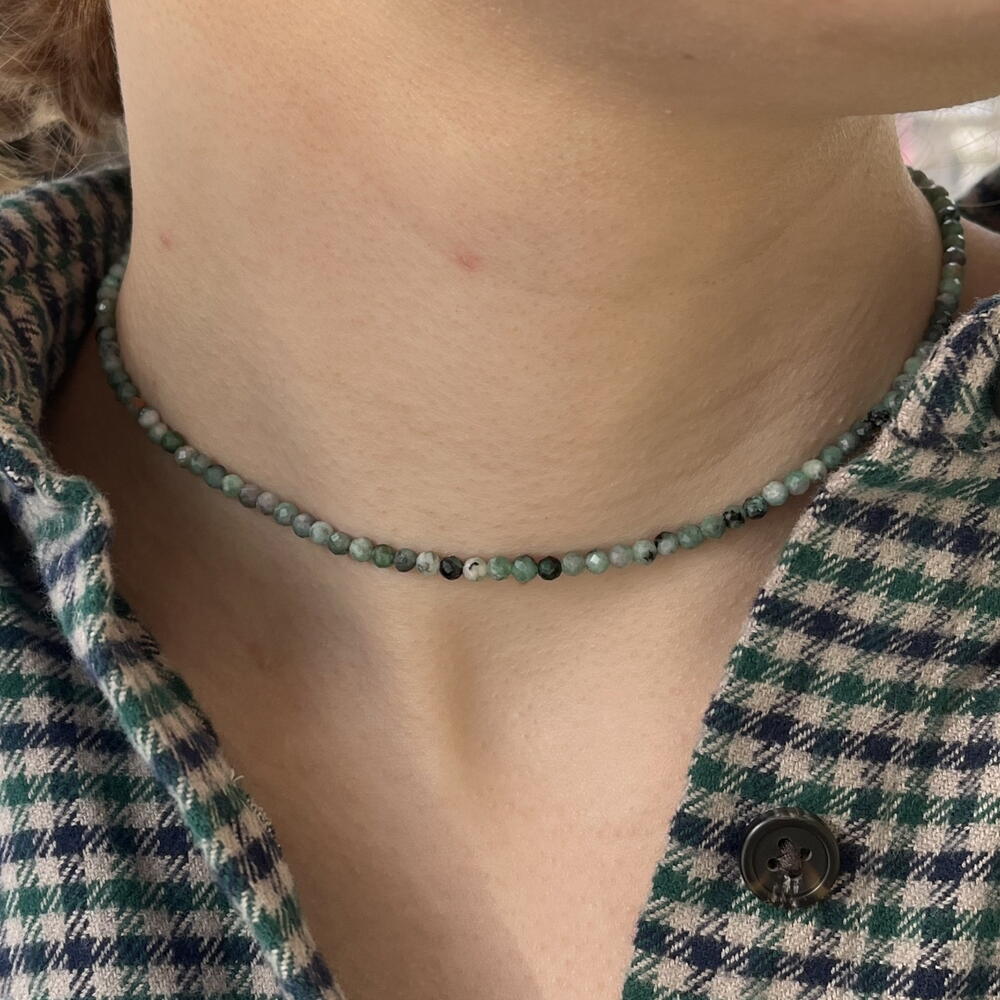 Чокер из натуральных изумрудов — изящный и универсальный подарок, который легко дополнит любой образ. Камни собраны вручную на мягкий и прочный ювелирный тросик, поэтому украшение комфортно носить каждый день. Фурнитура из нержавеющей стали, замочек — из серебра 925 пробы. Подойдёт и для повседневных сочетаний, и для особых случаев, оставаясь деликатным, но выразительным акцентом. ✨ Доступна подарочная упаковка ко Дню влюблённых.