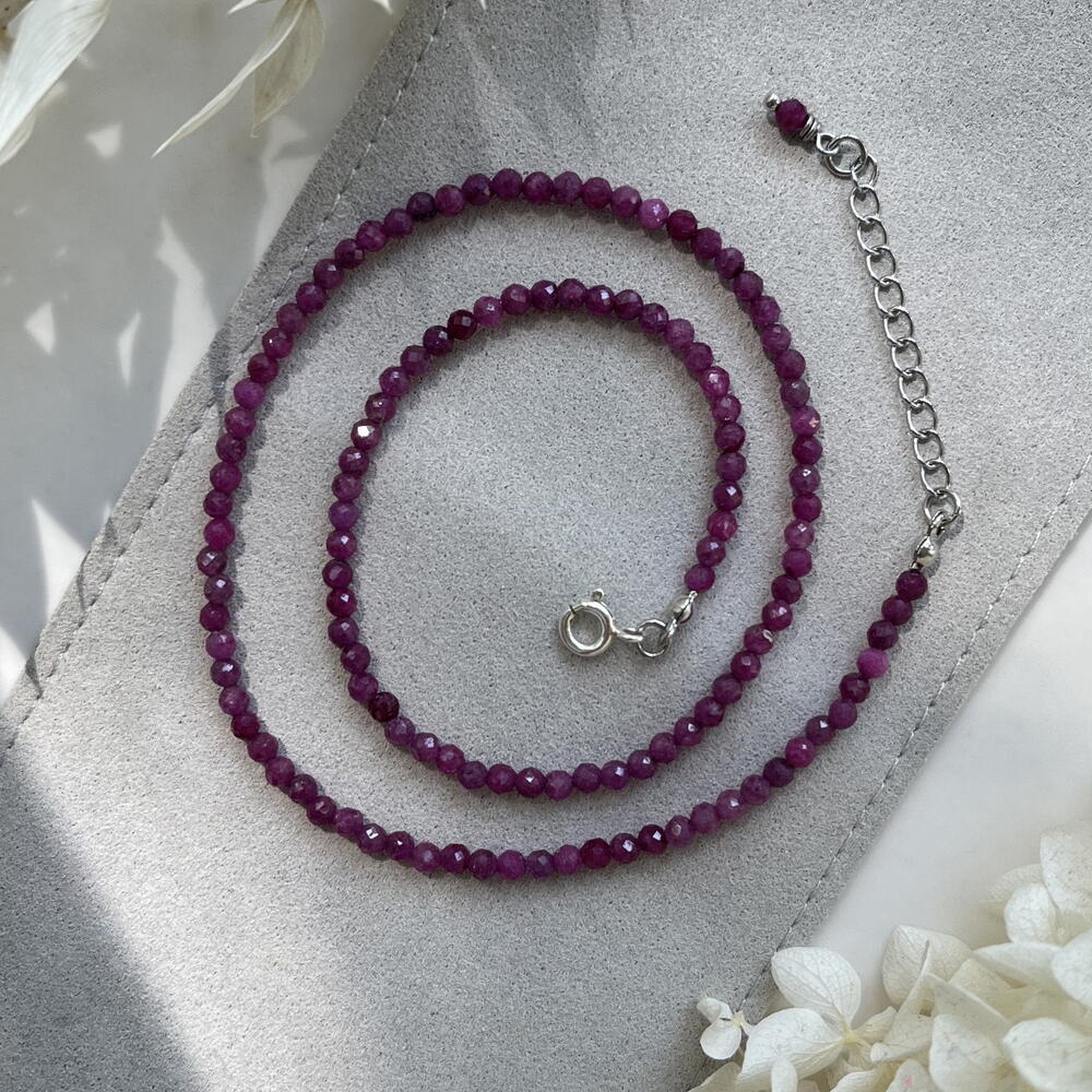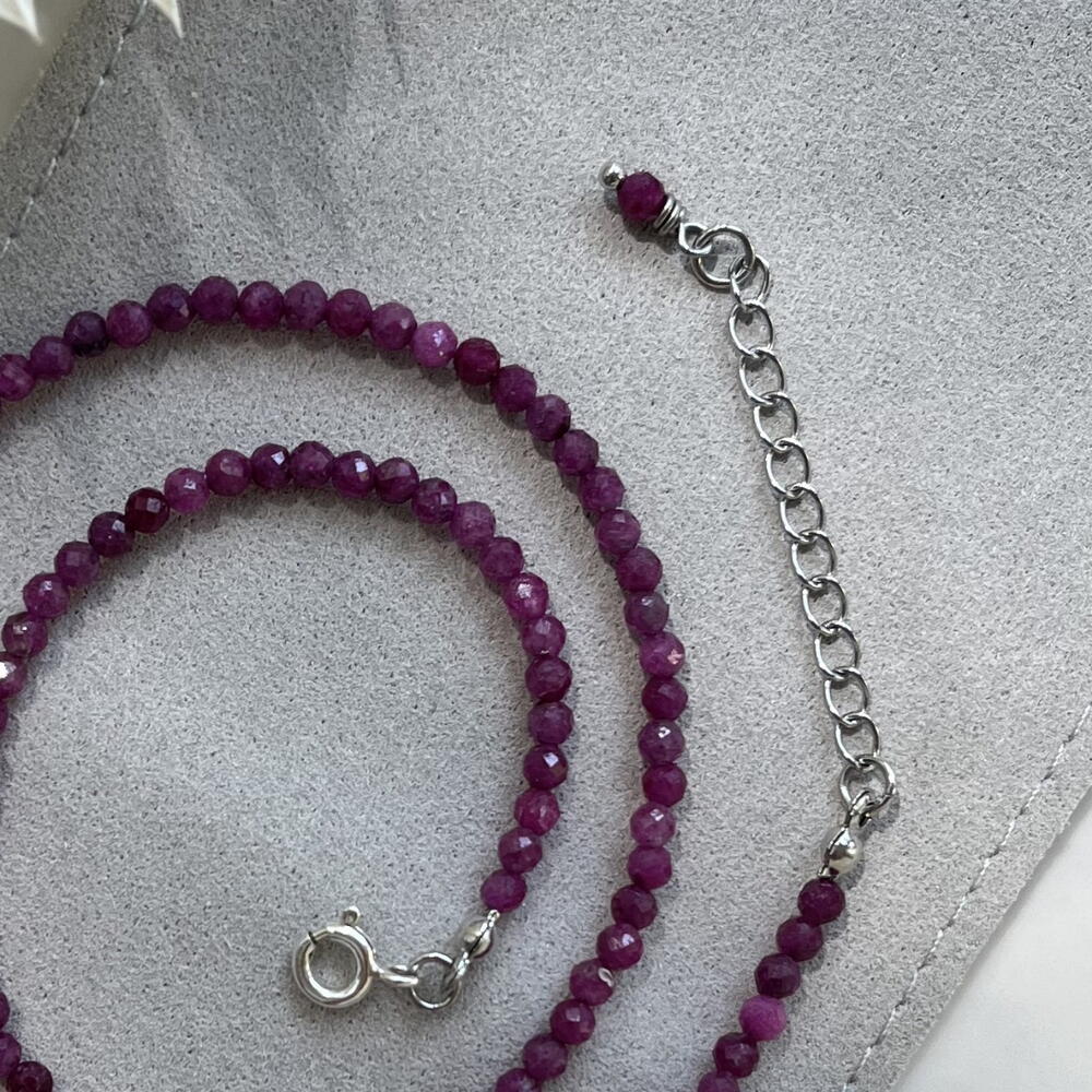 Чокер из натуральных рубинов ювелирной огранки — изящный и универсальный подарок, который легко впишется в любой образ. Камни собраны вручную на мягкий и прочный ювелирный тросик, благодаря чему украшение комфортно носить каждый день. Фурнитура из нержавеющей стали, замочек — из серебра 925 пробы. Чокер подойдёт как для повседневных образов, так и для особых случаев, и станет внимательным подарком с продуманными деталями. ✨ Доступна подарочная упаковка ко Дню влюблённых.