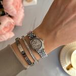 Описание товара: Элегантные часы с двумя стильными браслетами в комплекте. Часы выполнены в современном дизайне с прочным корпусом из нержавеющей стали. Механизм кварцевый, что гарантирует точность и надежность. Циферблат украшен изящными деталями, а ремешок из качественного материала обеспечивает комфортное ношение. Браслеты дополняют образ: один – из металлических звеньев, идеально сочетающийся с часами, второй – текстильный, для создания