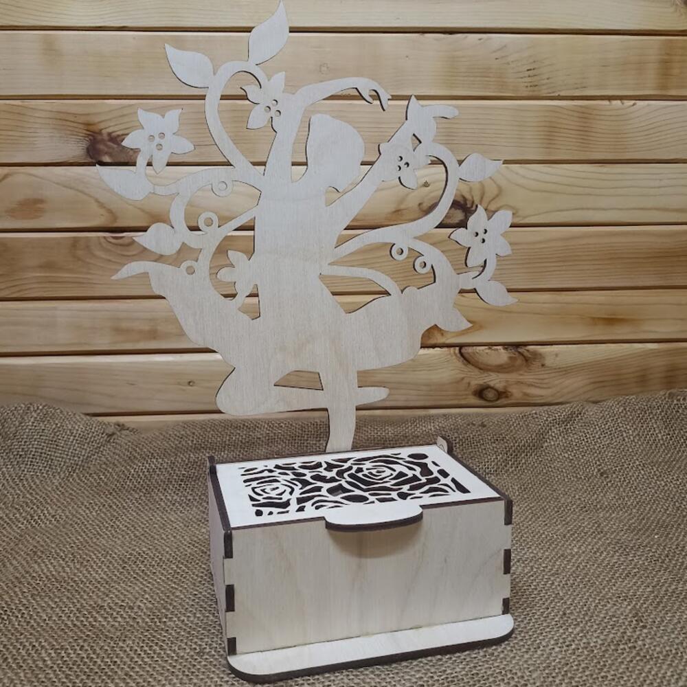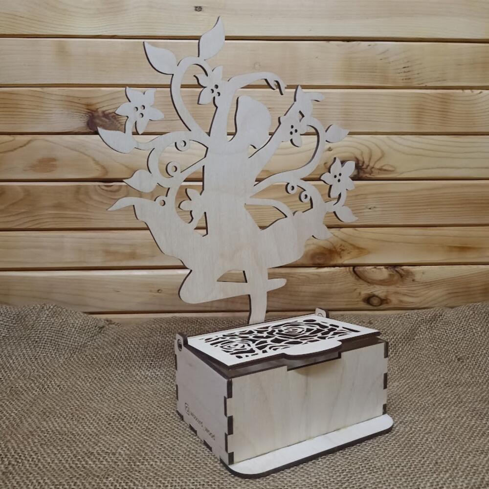Шкатулка для украшений представляет собой стильное и функциональное хранилище для ценных аксессуаров. Она выполнена из натуральной березовой фанеры, что придает ей нежный и естественный вид. В отличие от традиционных шкатулок, данная модель имеет уникальное исполнение: основание шкатулки представляет собой шкатулку с крышкой, а сзади нее располагается декоративная балерина. Балерина, выполненная из высококачественного материала с тщательным проработанным дизайном, что добавляет изысканности и очарования этой шкатулке. Ее изящные изгибы придают ей неповторимый шарм, делая ее не только украшением, но и функциональным элементом. Балерина служит подставкой для украшений, таких как цепочки, серьги, и колечки. Это позволяет удобно хранить и организовать свои украшения, предотвращая их потерю и повреждение. Крышка шкатулки открывается, обнаруживая внутреннее пространство, предназначенное для хранения ценных предметов. На крышке выполнен резной узор в виде роз, придавая шкатулке изысканность и элегантность. Этот элемент декора добавляет уникальности и стиля шкатулке, делая ее привлекательной для любителей изящных вещей и дизайна. Шкатулка в основании с балериной является идеальным решением для хранения украшений, сочетающим в себе красоту, функциональность и стиль. Ее уникальный дизайн и высокое качество материалов делают ее прекрасным подарком для любого случая. Изделие выполнено только из экологичных материалов. Внешний размер (Ш * Г * В): 22 * 9 * 33 см Размер внутреннего объёма (Ш * Г * В): 10 * 8 * 6 см