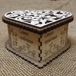Шкатулка в форме сердца из березовой фанеры – это не просто емкость для хранения, а символ любви и заботы. Выполненная в форме сердца, она украшена резным узором на крышке, который придает ей изящество и уникальность. На боковых стенках шкатулки выгравировано пожелание, которое делает подарок еще более личным и трогательным. Изготовленная из экологичной березовой фанеры, шкатулка обладает прочностью и долговечностью. Натуральный цвет и текстура дерева придают ей теплоту и естественность. Компактный размер позволяет разместить внутри небольшие предметы: украшения, памятные вещи, письма или другие ценные мелочи. Шкатулка Сердечко – это универсальный подарок, который подойдет для любого случая: дня рождения, годовщины свадьбы, Дня святого Валентина или просто как знак внимания и любви. Она станет прекрасным украшением интерьера и будет напоминать о дарителе и его теплых пожеланиях. Возможные надписи на боковых стенках: Самая любимая, Самая красивая Желаю счастья и добра, чтоб жизнь как день была светла Или любое Ваше пожелание, указанное при заказе. Изделие выполнено только из экологичных материалов, и окрашено натуральными пропитками. Размер (Ш * Г * В): 11 * 10 * 5 см