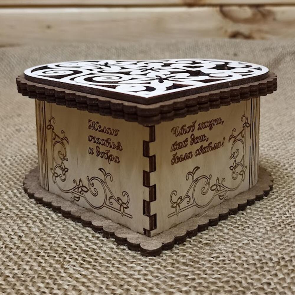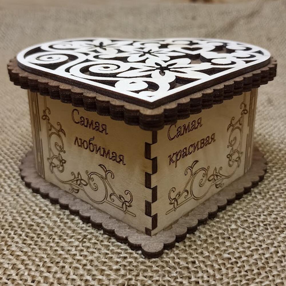 Шкатулка в форме сердца из березовой фанеры – это не просто емкость для хранения, а символ любви и заботы. Выполненная в форме сердца, она украшена резным узором на крышке, который придает ей изящество и уникальность. На боковых стенках шкатулки выгравировано пожелание, которое делает подарок еще более личным и трогательным. Изготовленная из экологичной березовой фанеры, шкатулка обладает прочностью и долговечностью. Натуральный цвет и текстура дерева придают ей теплоту и естественность. Компактный размер позволяет разместить внутри небольшие предметы: украшения, памятные вещи, письма или другие ценные мелочи. Шкатулка Сердечко – это универсальный подарок, который подойдет для любого случая: дня рождения, годовщины свадьбы, Дня святого Валентина или просто как знак внимания и любви. Она станет прекрасным украшением интерьера и будет напоминать о дарителе и его теплых пожеланиях. Возможные надписи на боковых стенках: Самая любимая, Самая красивая Желаю счастья и добра, чтоб жизнь как день была светла Или любое Ваше пожелание, указанное при заказе. Изделие выполнено только из экологичных материалов, и окрашено натуральными пропитками. Размер (Ш * Г * В): 11 * 10 * 5 см