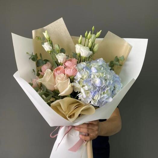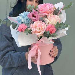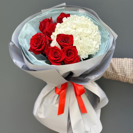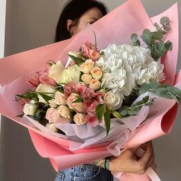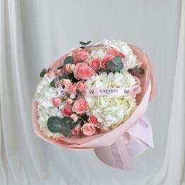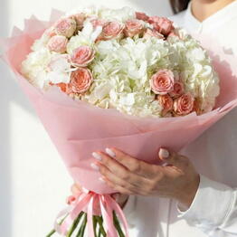 Букет из белых гортензий и розовых кустовых роз — нежность и утончённость в одном составе 5.000 Купить 79 900 ₸