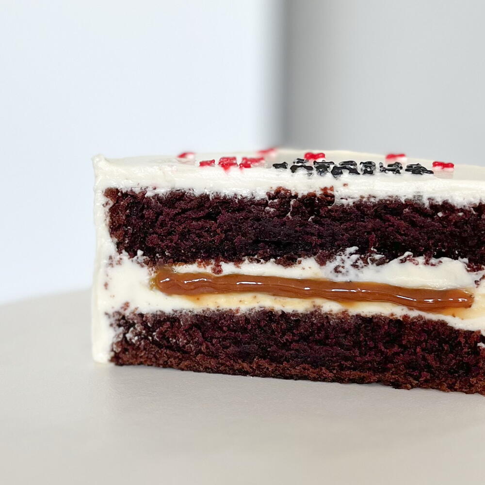 «Ваниль-клубника» Масло сливочное, сахар, мука, яйца, кефир, сода, соль, сыр творожный, сливки 33%, сахарная пудра, клубника замороженная «Шоколад-маракуйя» Масло сливочное, сахар, мука, яйца, кефир, какао-порошок, сода, соль, сыр творожный, сливки 33%, сахарная пудра, пюре маракуйи, крахмал кукурузный «Шоколад-соленая карамель» Масло сливочное, сахар, мука, яйца, кефир, какао-порошок, сода, соль, сыр творожный, сливки 33%, сахарная пудра
