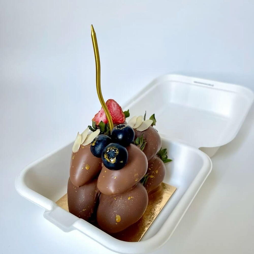 Мини бенто торт из клубники в шоколаде-это компактный десерт на одного-двух человек,который сочетает нежный вкус шоколада и свежей клубники 8 штук клубники в шоколаде Свеча в подарок 🎁