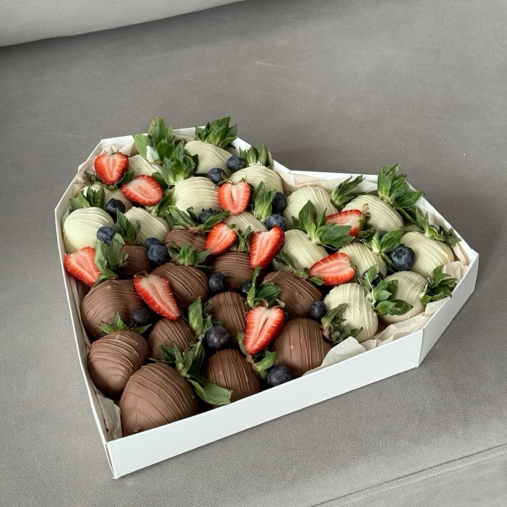 Бокс сердце из клубники в шоколаде со свежими ягодами, точно поможет выразить все ваши чувства!
