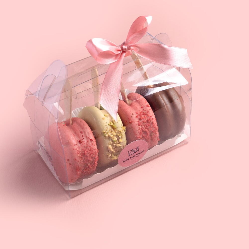 Макаронс- Миндальная мука, сливки натуральные, бельгийский шоколад, арахис, клубника, фисташка, малина.
