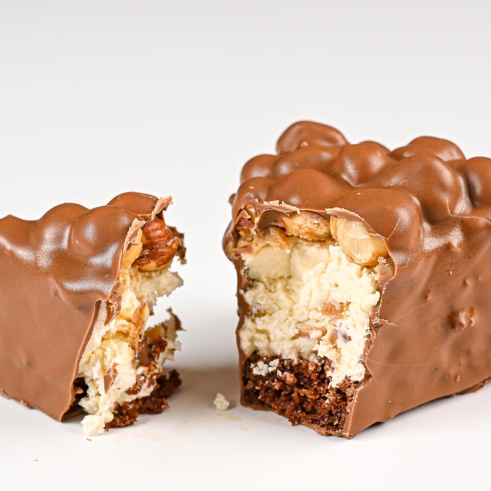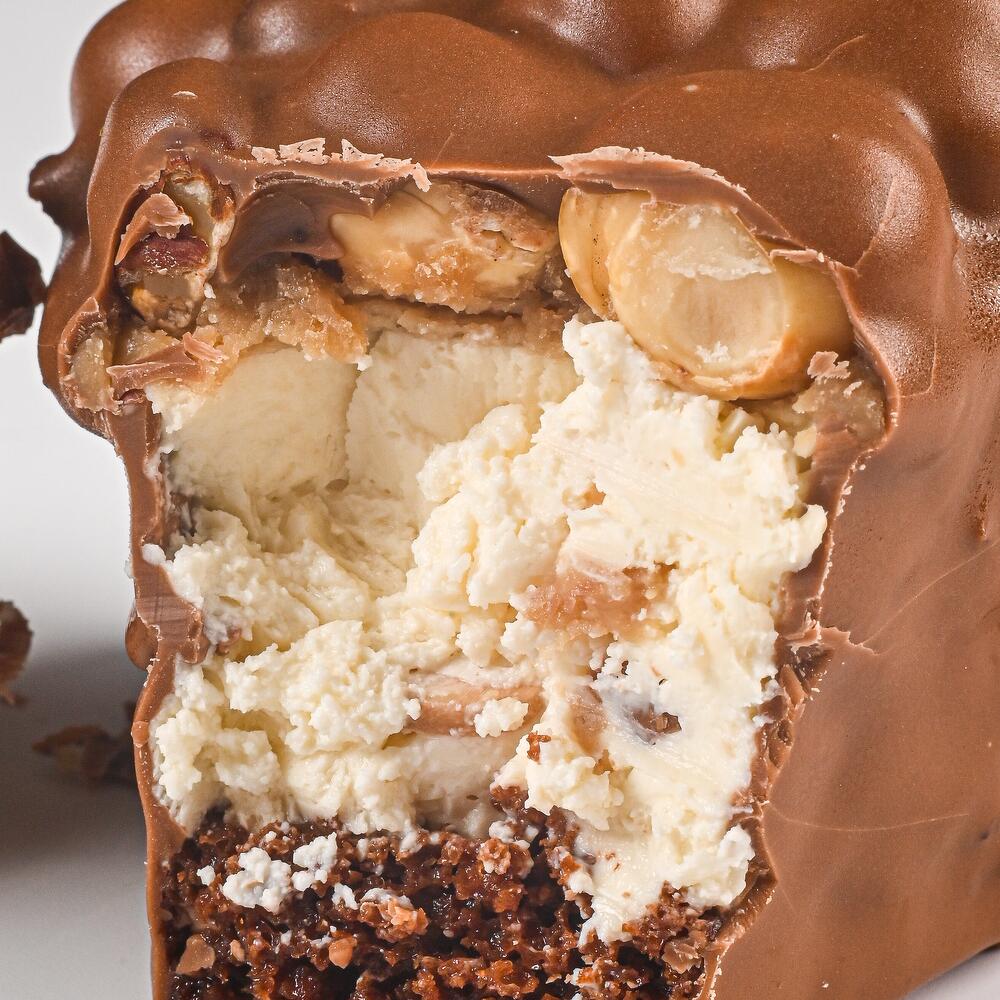 Брауни с творожным кремом, карамелью и фундуком, и все это покрыто шоколадом