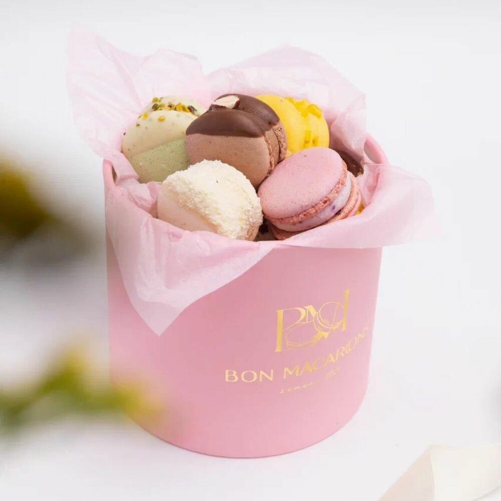 В наборе 13 шт макаронс, состав макаронс- миндальная мука, сливки натуральные, бельгийский шоколад, орехи и ягоды.