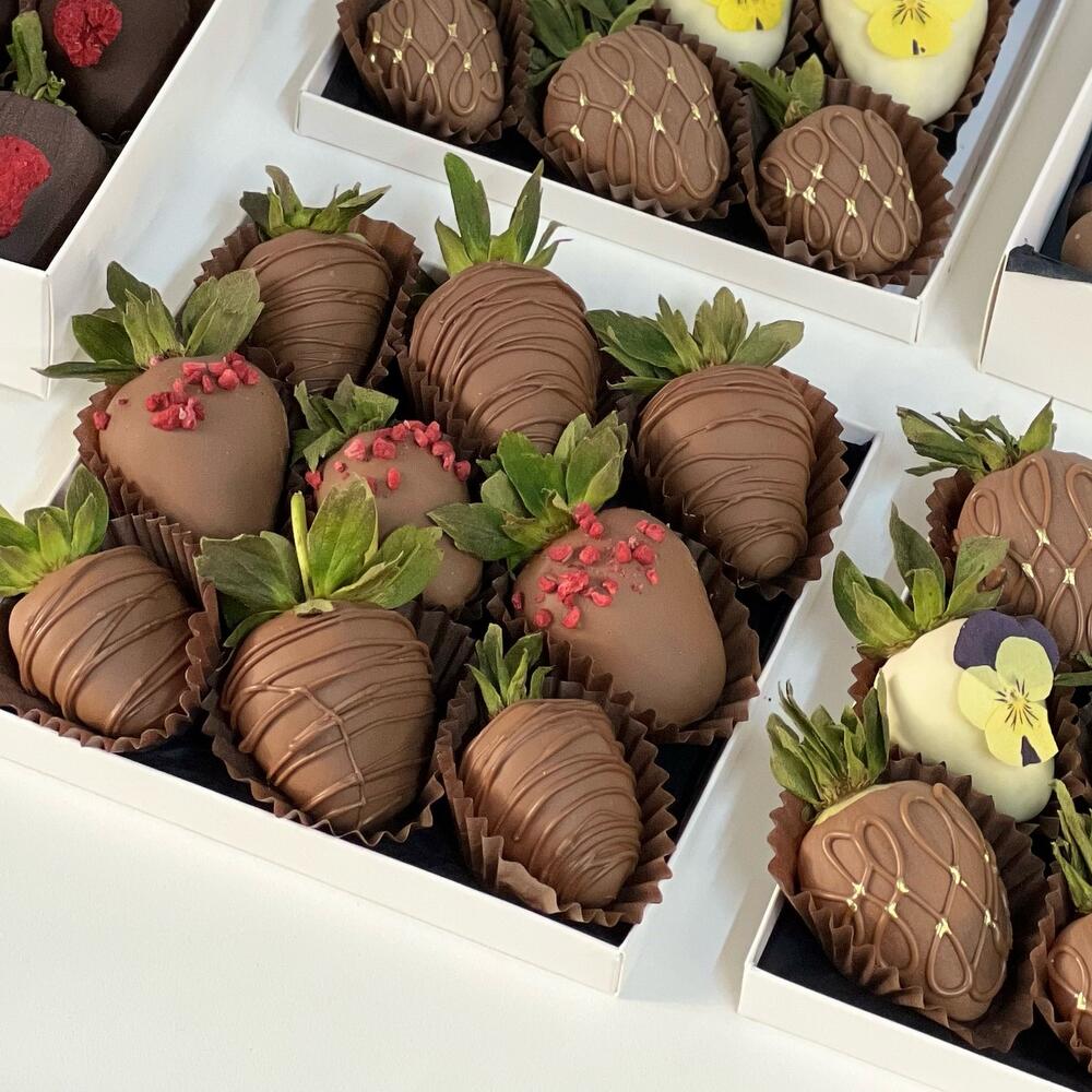 Шоколадқа батырылған құлпынай қорабы CLASSIC (сүтті)- бұл премиум-класқа жататын нәзік шоколадқа батқан жаңа, мұқият таңдалған құлпынайлар. Тек Callebaut шоколады қолданылады, ол өзінің сапасы мен құлпынайдың шырындылығын айқындайтын кремді құрылымымен танымал. Сыйлық үшін немесе талғампаз десерттен ләззат алу үшін тамаша.
