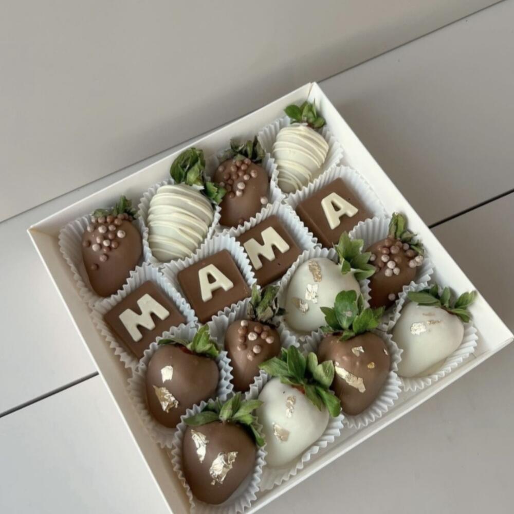 Набор клубники в бельгийском халяльном шоколаде Для мамы — это изысканный подарок, который сочетает в себе свежесть отборной клубники и утончённый вкус премиального бельгийского шоколада. Каждая ягода вручную окунута в нежный молочный или белый шоколад, украшена съедобным золотым покрытием, шоколадными бусинами и изящными узорами из глазури. Шоколадные кубики с надписью МАМА придают набору особую теплоту и душевность, делая его идеальным подарком к любому празднику. Почему стоит выбрать этот набор? Качество: Используем только свежие ягоды и халяльный шоколад высокого качества. Красота: Элегантный декор и стильная упаковка. Эмоции: Подходит для выражения любви и заботы о самом дорогом человеке. Идеально подойдёт для: Дня матери Дня рождения Приятного сюрприза без повода