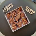 Этот подарочный набор создан для тех, кто ценит оригинальные и вкусные подарки. Сочные финики без косточек покрыты нежным молочным шоколадом и украшены орехами, золотой посыпкой и шоколадными фигурками в виде часов и инструментов. Такой сюрприз станет отличным подарком для мужчины на день рождения, профессиональный праздник или просто в знак внимания. Эстетичная коробка добавляет подарку стильный акцент. Вкусный, полезный и красивый десерт, который подойдёт как для чаепития, так и для праздничного стола. Рекомендуем хранить в прохладном месте, чтобы сохранить свежесть и блеск шоколада. Подарите эмоции и заботу вместе с этим вкусным набором.