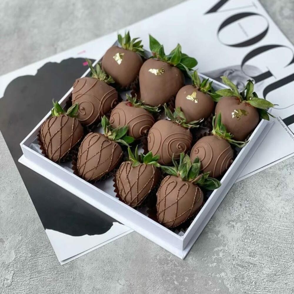 Название: Golden classic. Описание: Роскошный набор из отборной свежей клубники, щедро покрытой настоящим бельгийским халяль шоколадом. Каждая ягода вручную окунается в гладкий молочный шоколад с натуральным какао-маслом, создавая идеальное сочетание сочности и нежности. Изящный декор из тонких шоколадных узоров придает каждой клубнике элегантный вид, а золотая пищевая поталь делает этот набор достойным особенных моментов. Благодаря натуральным ингредиентам и отсутствию искусственных добавок десерт получается не только изысканным, но и полезным. Этот набор станет идеальным подарком для ценителей утонченных вкусов или изысканным дополнением к праздничному столу.