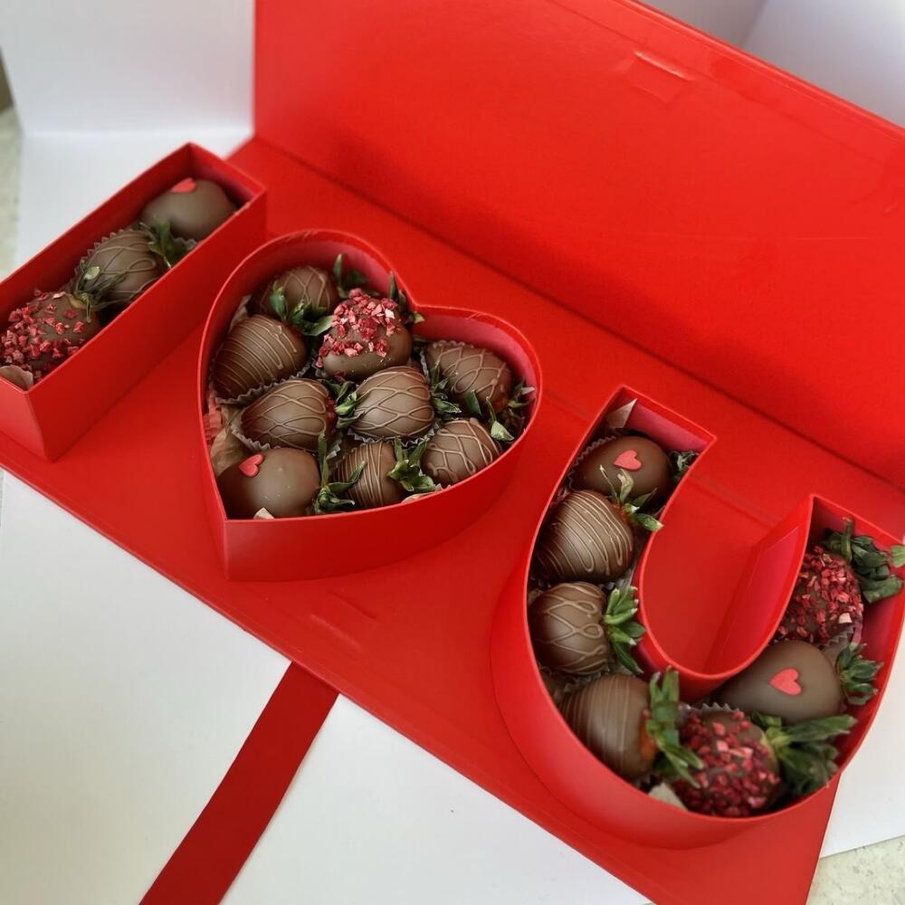 19 шт клубники в шоколаде, в популярной коробке I love u