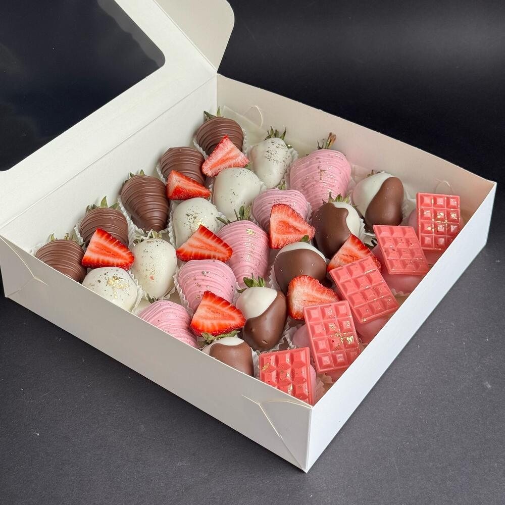 25 шт клубник в бельгийском шоколаде с kinder дизайном и добавлением плиток шоколада