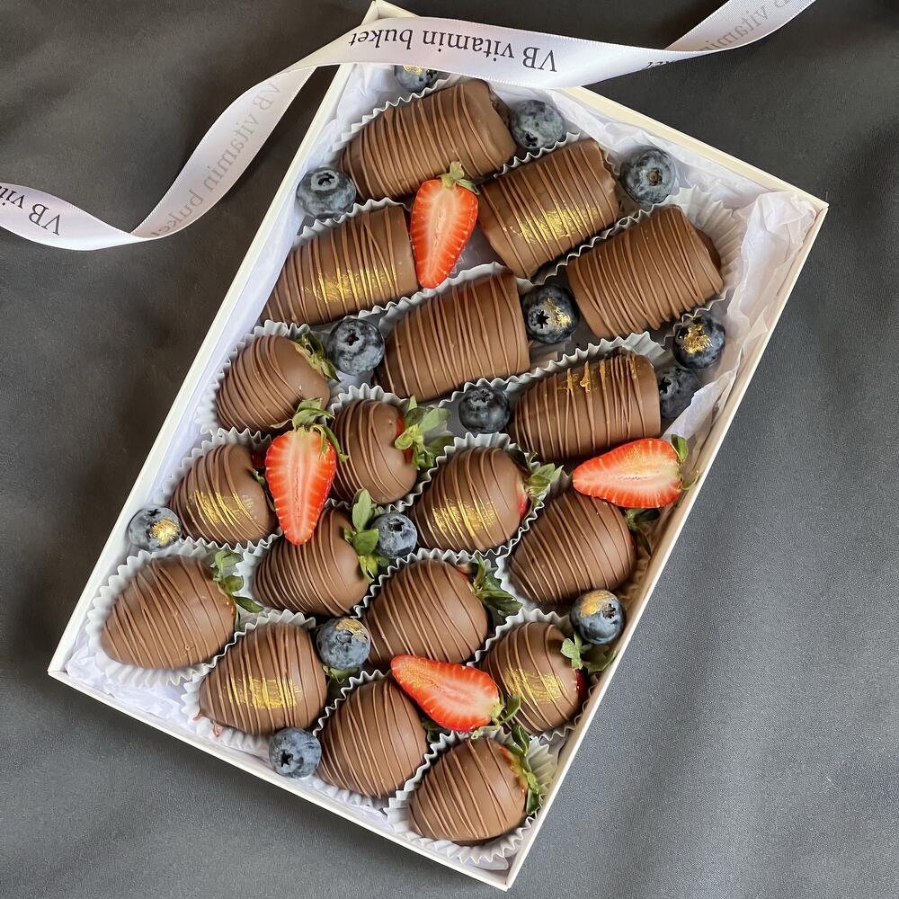 Клубника и бананы в бельгийском шоколаде — сладкая классика в стильном исполнении.