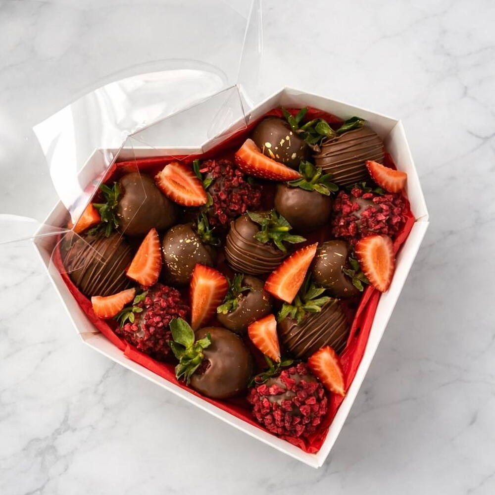 Жаңа, шырынды құлпынай нәзік шоколад қабатымен қапталған, ол оның табиғи тәттілігін мінсіз көрсетеді. Құлпынайдың балғындығы мен бай шоколад дәмінің үйлесімі бұл десертті талғампаз әрі әмбебап сыйлыққа айналдырады — романтикалық сәтке, мерекеге немесе себепсіз жасалатын жағымды комплимент үшін.