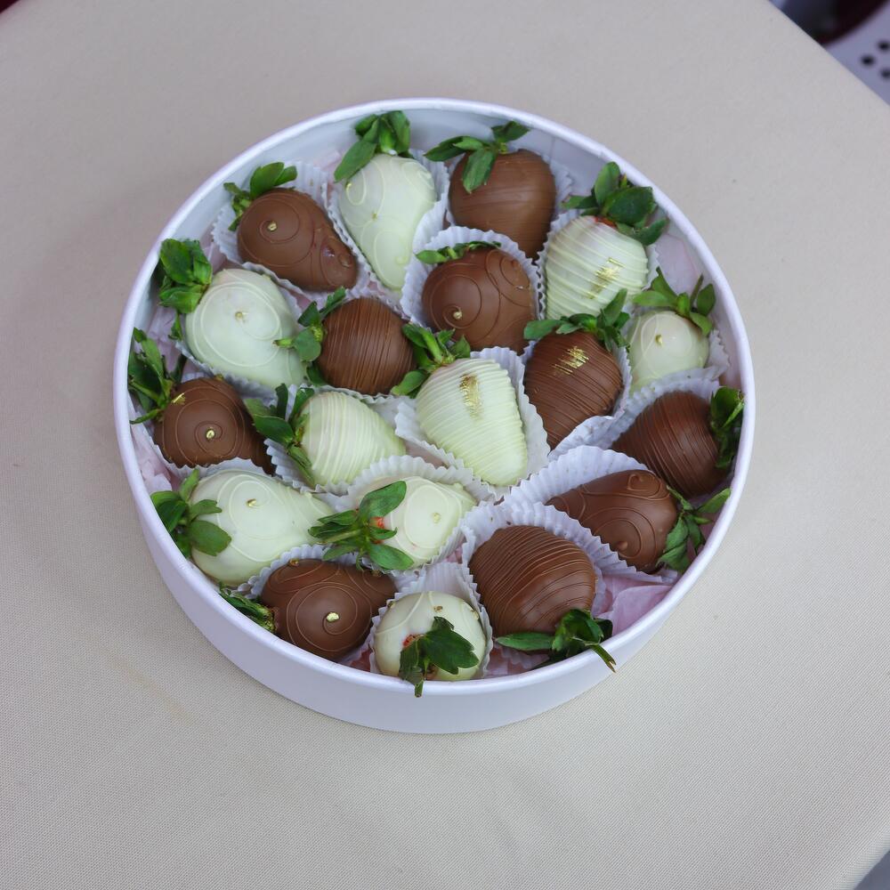 Сет клубник в шоколаде. В сет входят: Клубника в шоколаде, 19 шт. Коробка, 1 шт.
